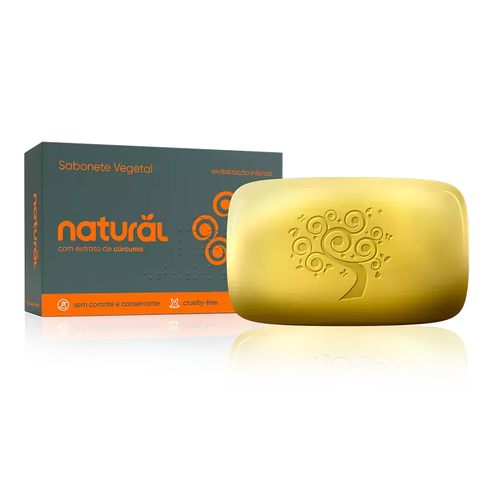Também conhecida como açafrão ou raiz-do-sol, a cúrcuma é uma especiaria que faz parte da cultura e da tradição indiana. Utilizada há séculos como matéria-prima em produtos de beleza, ela oferece diversos benefícios para o tratamento de todos os tipos de pele. Eficaz no combate da acne, devido às suas propriedades antissépticas e antibacterianas. O sabonete em barra pode ser utilizado no corpo e no rosto.